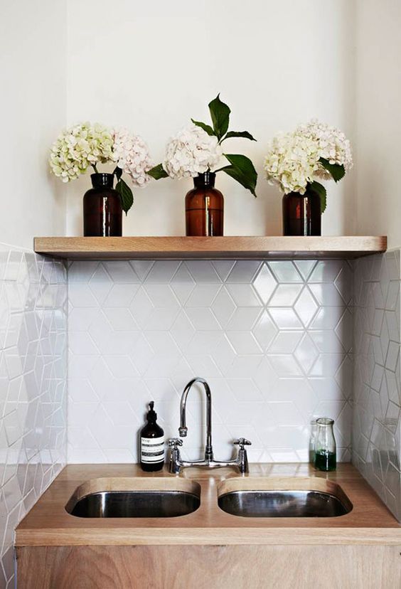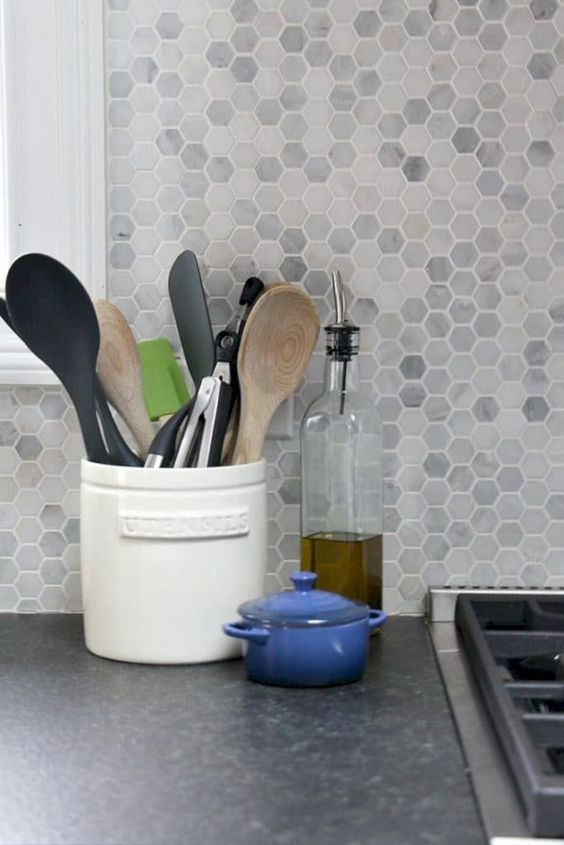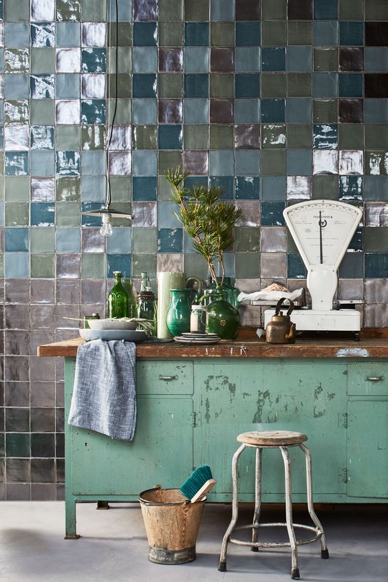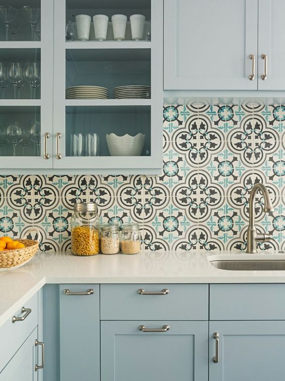 Možete postaviti pločice na deo zida koji odvaja gornji i donji deo sa policama, a možete i na ceo zid. Pločice novijih generacija se izrađuju sa „mat” efektom, reflektujuće, u jako malim dimenzijama i raznim oblicima, tako da na vama je samo da odaberete u kojem stilu želite da uredite kuhinju.