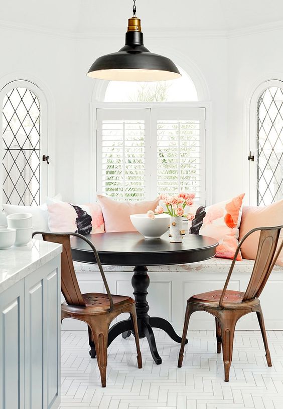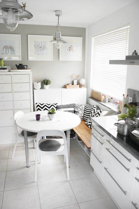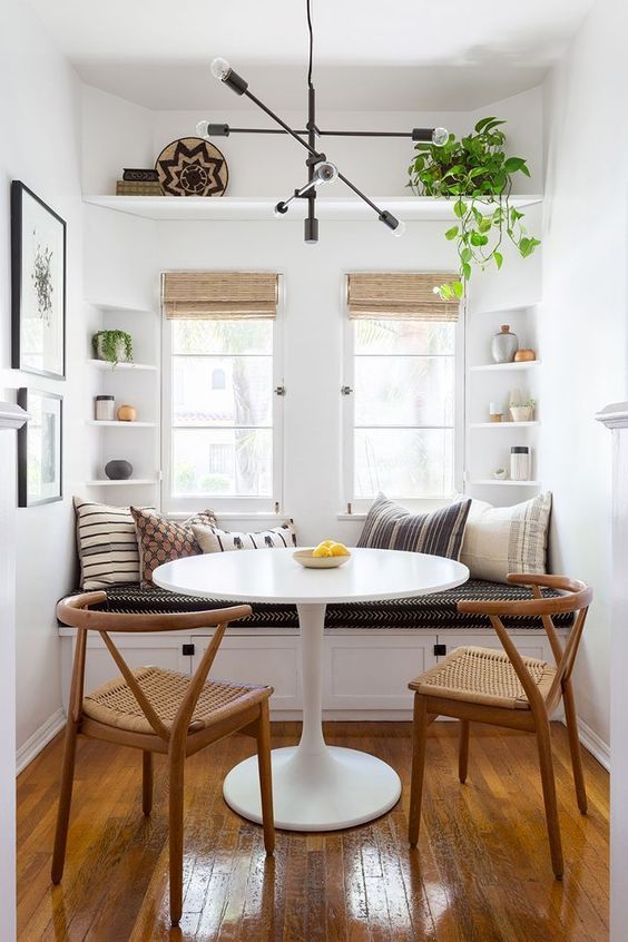 Ukoliko nemate mesta za klasičan veliki sto sa više stolica, možete uzeti okrugli sto sa 2-4 stolice. Okrugli sto je dosta manji i lako će se uklopiti u bilo koji stil u kome je uređen vaš dom. Klupa je takođe odlična ideja za uštedu prostora. Možete je napraviti po meri prostora koji vam je na raspolaganju i na nju postaviti ukrasne jastuke kako bi bila udobna i lepo izgledala. Tekstil će vam doneti osećaj udobnosti, unesite ga sa kroz jastuke i prekrivače i tako ćete napraviti intimniju atmosferu. Potrebno je da razmišljate izvan okvira, da potražite nameštaj koji će vam biti funkcionalan! Postoji dosta idejnih rešenja za sedenje, donosimo vam neke koje možete isprobati.