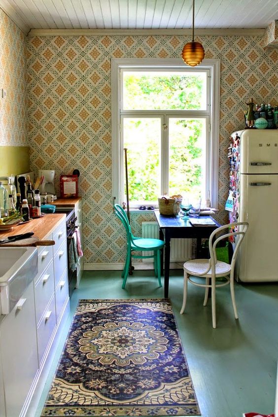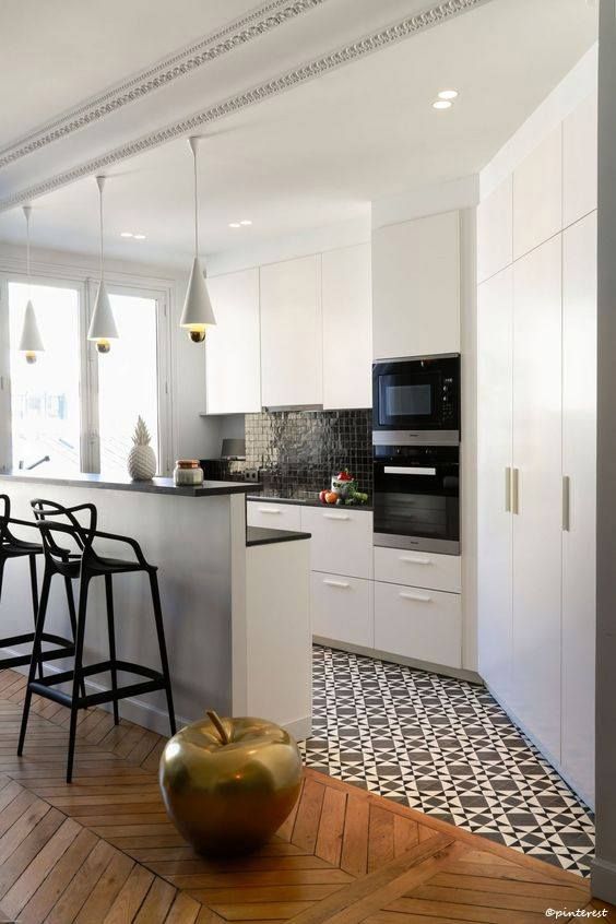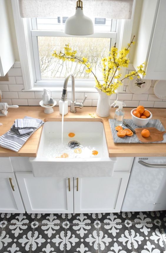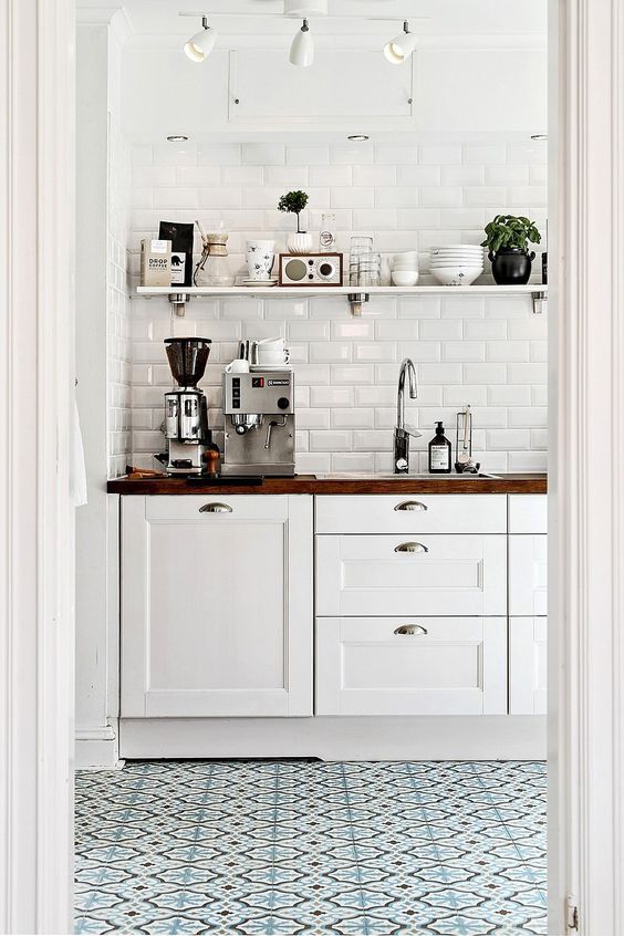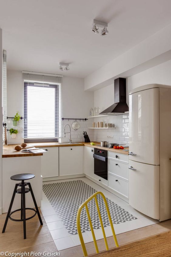 Detalj koji će takodje vizuelno uvećati kuhinju jeste zanimljiv pod. Možete se igrati sa bojom pločica i sklapati mozaik. Donosim vam puno ideja, na vama je da se inspirišete i da ih isprobate.