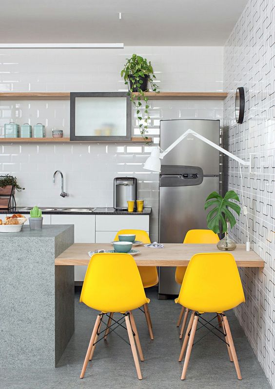 Kuhinja je mesto gde se svakoga dana porodica okuplja, zato je potrebno posvetiti puno pažnje za njeno uređenje. Ukoliko nemate mest za trpezarijki sto u malom stanu, kao zamena vam može poslužiti radna površina i zanimljive stolice.