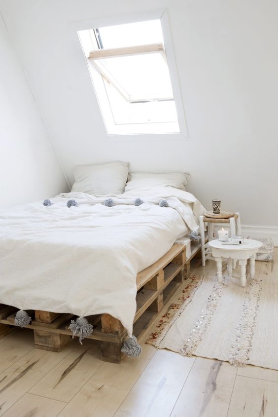 U spavaćoj sobi palete vam mogu poslužiti kao postolje za krevet. Umesto klasičnog rama koje imate u prodavnicama nameštaja, isprobajte palete. Paletu možete prefarbati u boju koja vam se uklapa za vašu sobu, a možete ostaviti i neobrađenu paletu. Po vašem stilu dalje možete da nadograđujete krevet sa detaljima kao što su posteljina, ukrasni jastuci i vuneni prekrivači u raznim bojama.